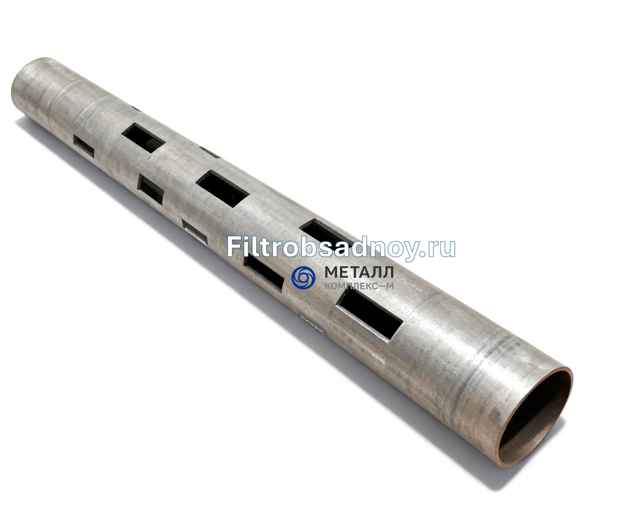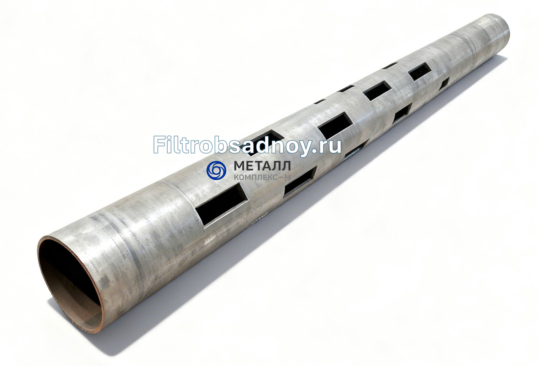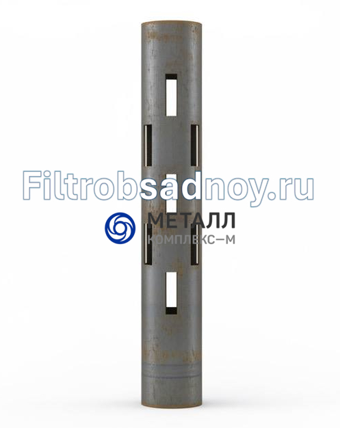 Фильтр обсадной колонны, корпусный. Диаметр 102 мм. Длина 2 метра. Производится путем перфорации отверстий на плазме ЧПУ под заданные параметры скважности. Фильтрующим элементом являются перфорированные ячейки корпуса фильтра. Соединение в колонне: под приварку или резьбовое.